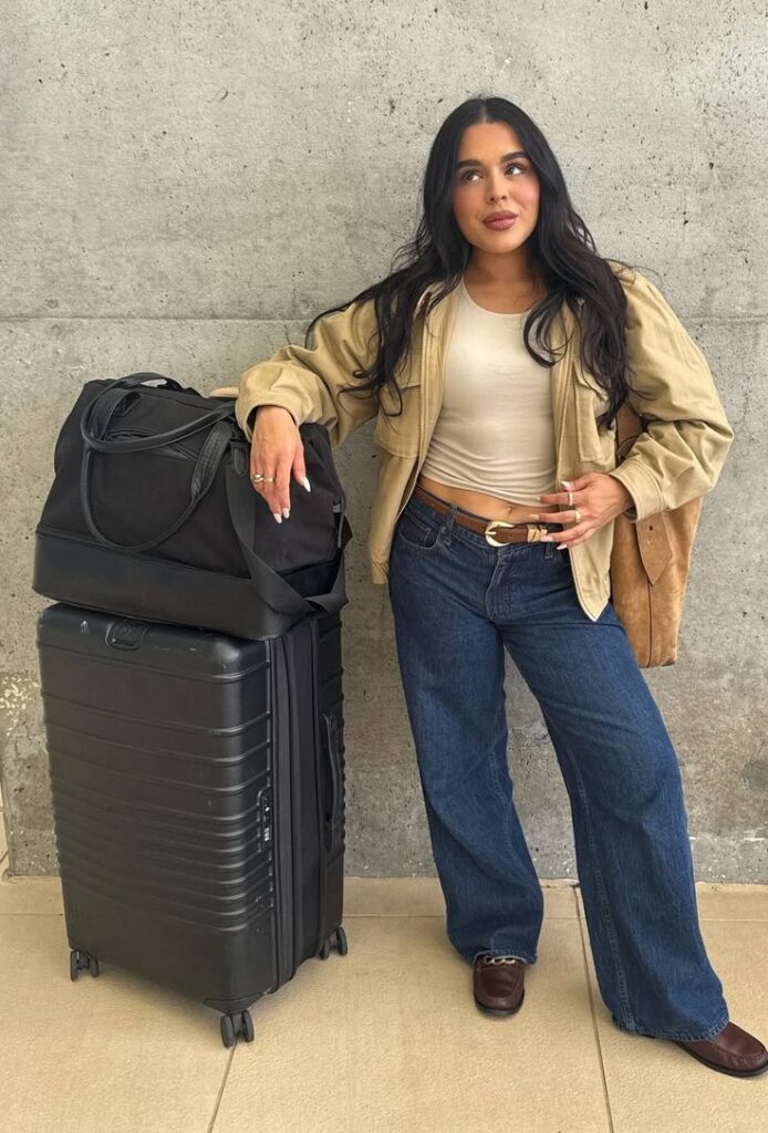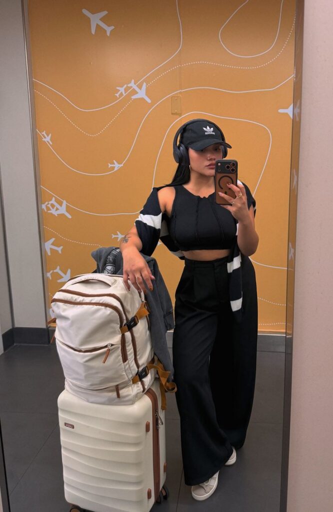 This combination hits that sweet spot between casual and intentional. You’re not trying too hard but you definitely don’t look like you just rolled out of bed either, which is honestly the goal for any travel outfit.
