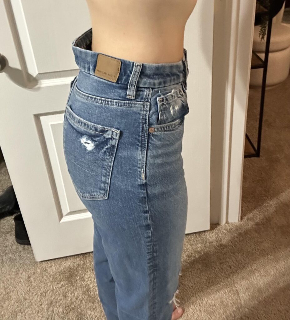 Honestly sometimes you just need to see how jeans actually sit on a curvy body from behind before you commit and this is genuinely reassuring. The American Eagle curvy fit hugs through the hip and thigh without pulling or gaping at the waist. That is the whole point. No belt needed, no tucking required. You ought to know your jeans look this good from every angle.