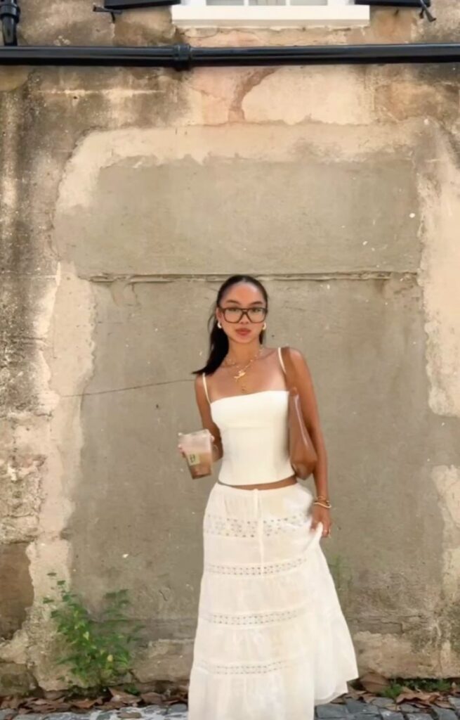 Pairing it with simple white pants outfit ideas through crisp shorts keeps the focus on that interesting top while maintaining balance in the overall look.