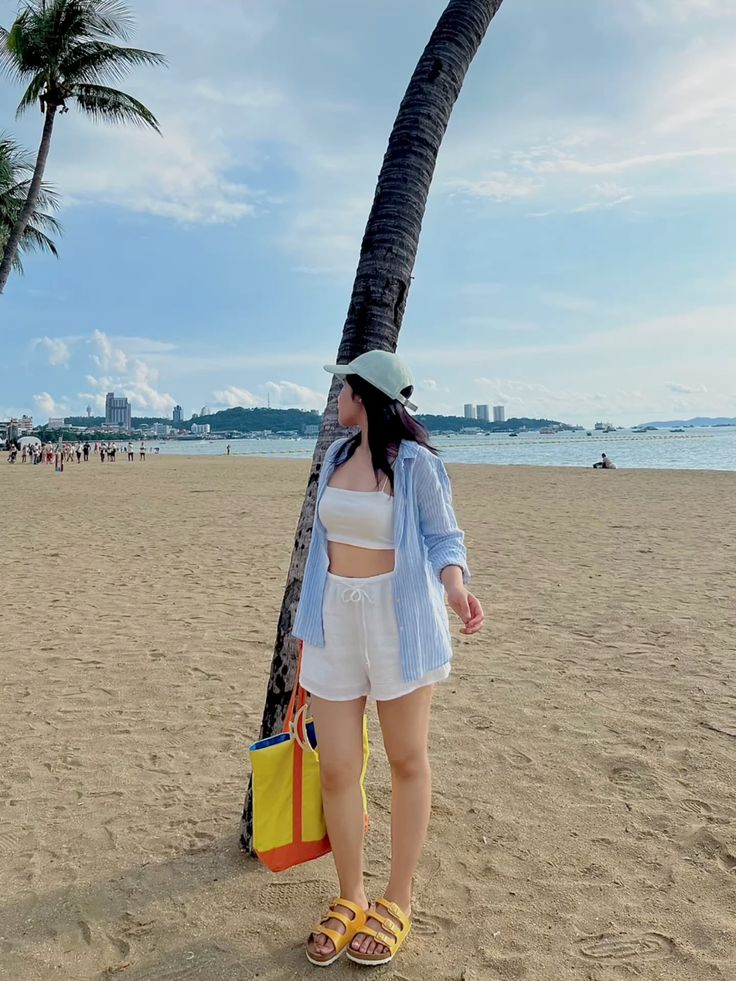 The structured handbag and delicate sandals lean into that sophisticated traveler aesthetic, and the panama hat gives you major European summer energy even though you’re in Southeast Asia.