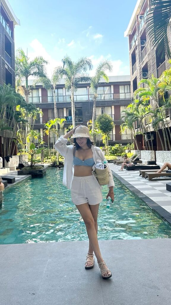 If you’re planning bali outfit ideas, throw on a wide brim hat and some round sunglasses to complete that effortlessly chic vacation vibe.
