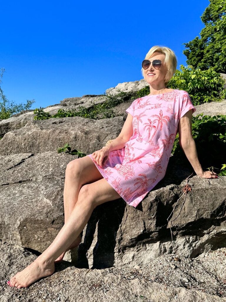 Sometimes you just want something super easy, comfortable and nice. This pink palm tree print tee dress is exactly that kind of throw on and go piece that still looks intentional.