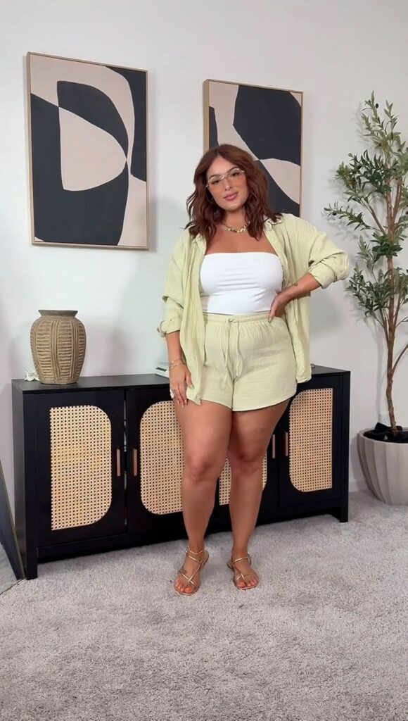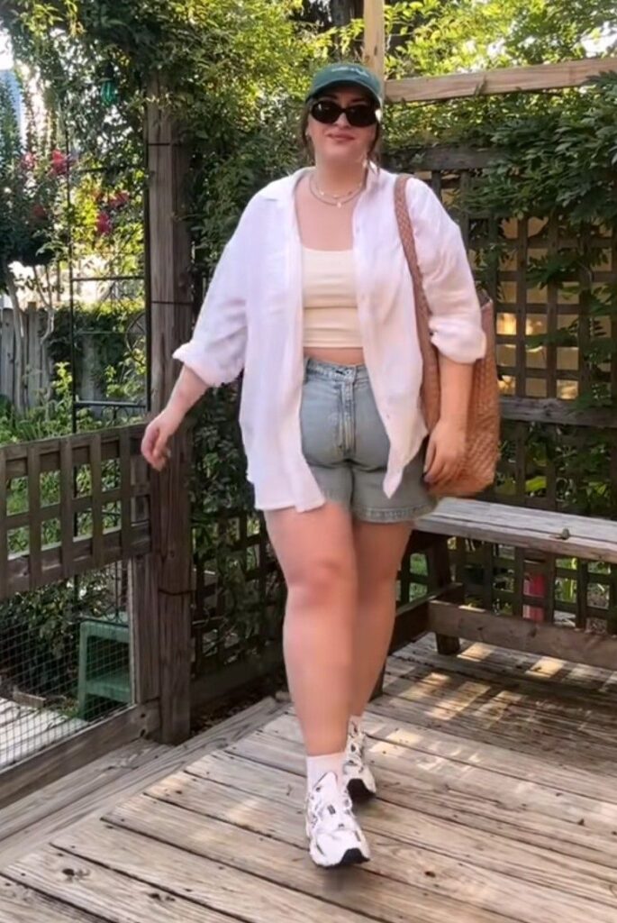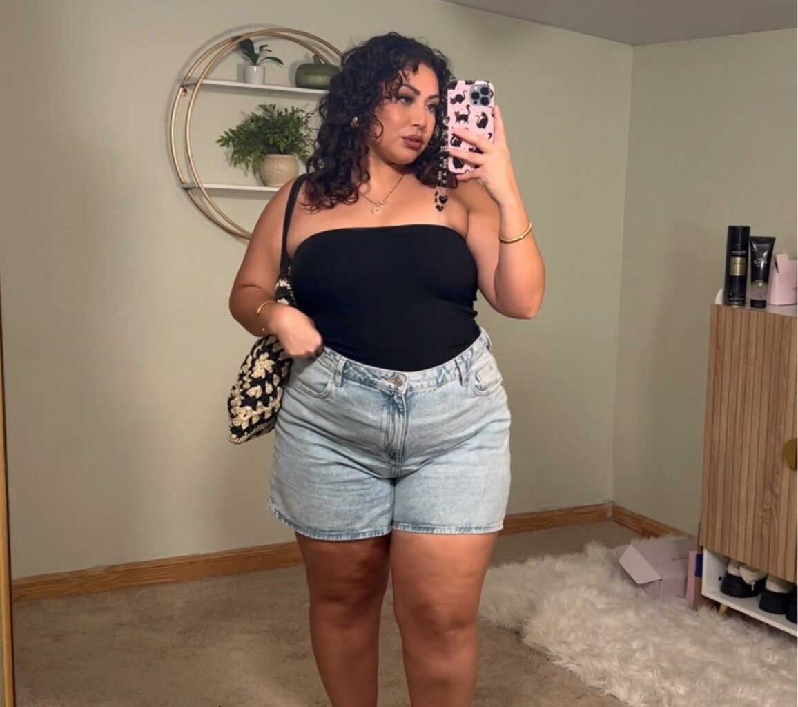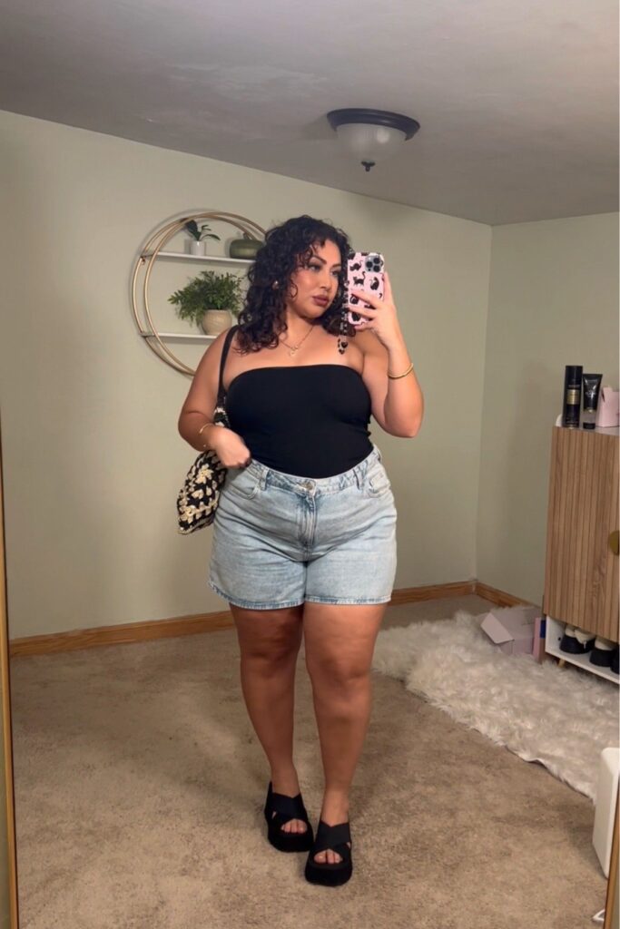 High waisted denim shorts with a simple crop tank is genuinely one of the most underrated plus size outfit formulas out there.