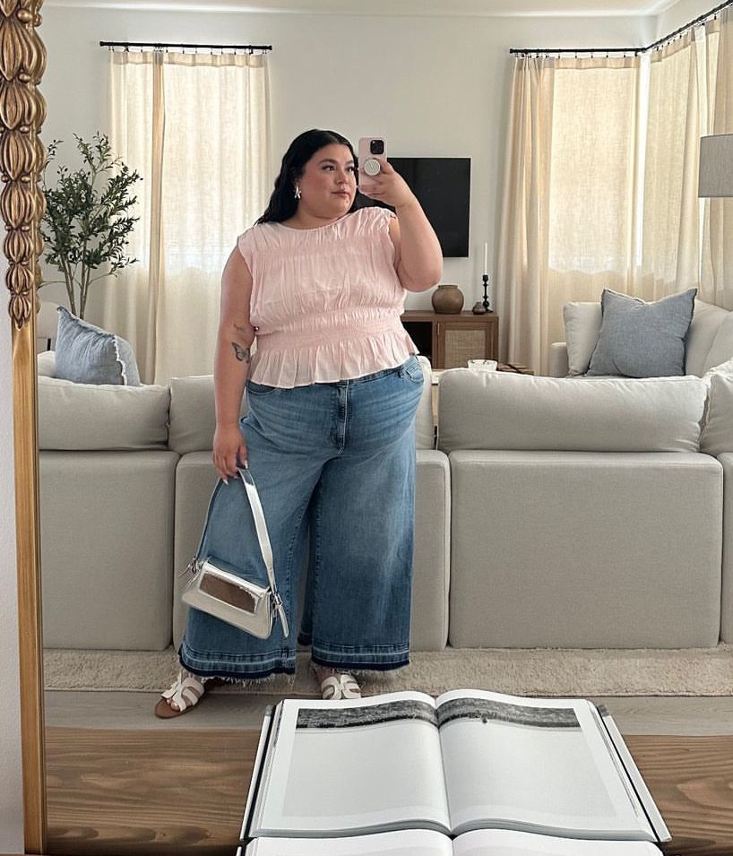 That off shoulder neckline does all the heavy lifting here. It’s such a flattering choice with wide leg jeans because the proportions just work so well, you know?