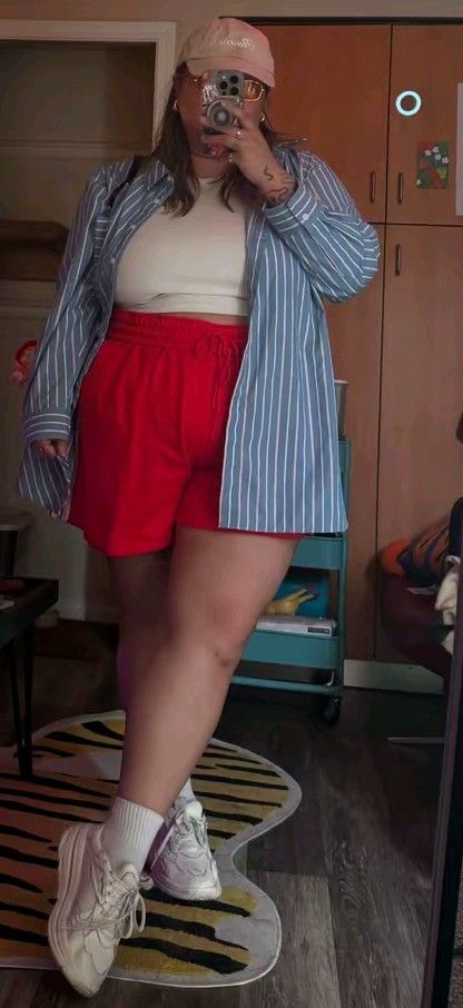 Red shorts are bold, and you know what, this outfit leans into that completely.