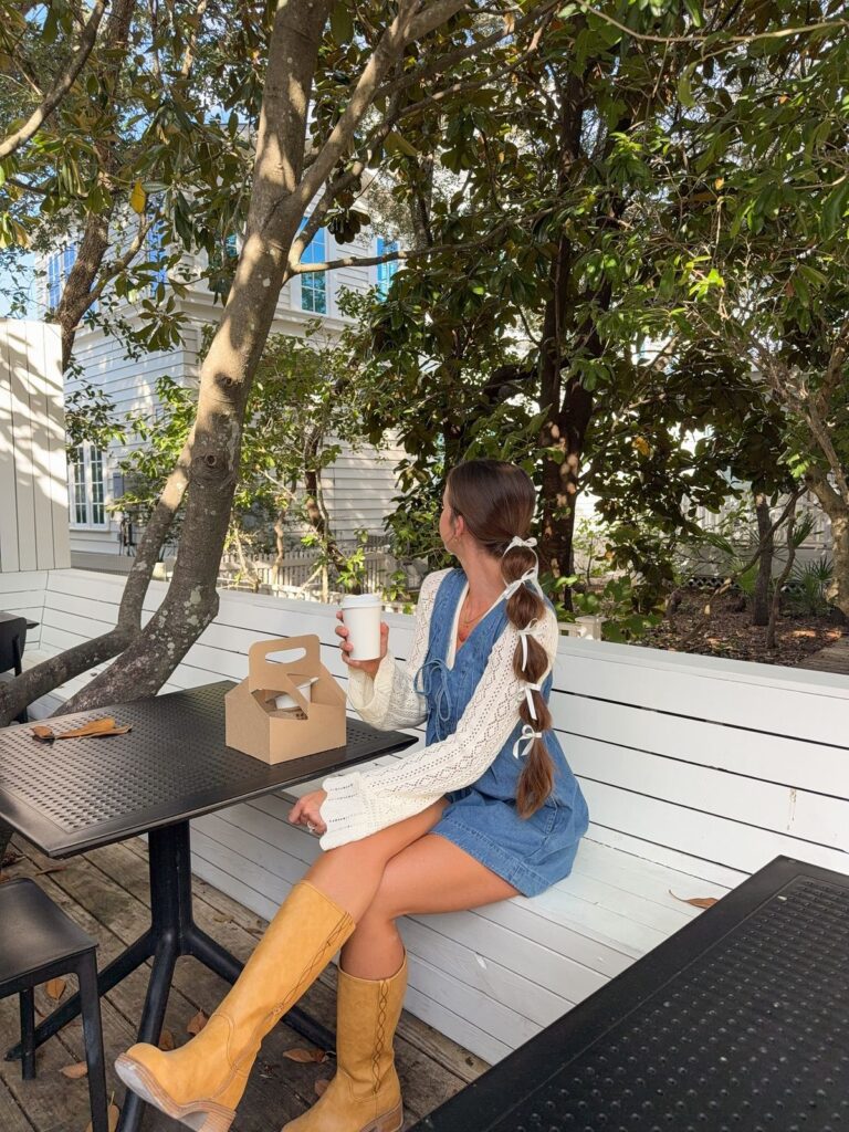 Grab your coffee date outfits inspiration here because this nails that cozy café aesthetic perfectly.