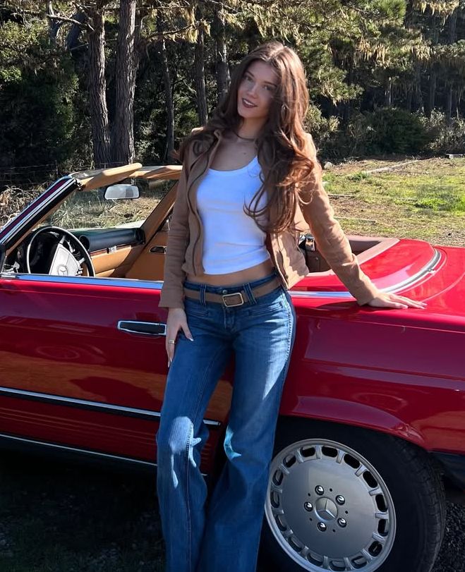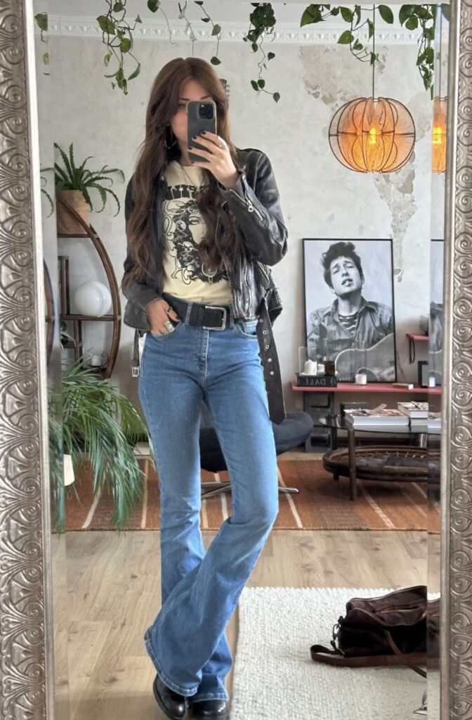 Sometimes the outfit IS the jeans. A fitted graphic crop tee tucked into low rise flares is that Y2K combination that’s so back right now and honestly you should lean all the way into it.