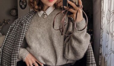 Imagine the softness of a cream wool cardigan wrapped around a quirky blouse dotted with mustard yellow polka dots or tiny teal florals.