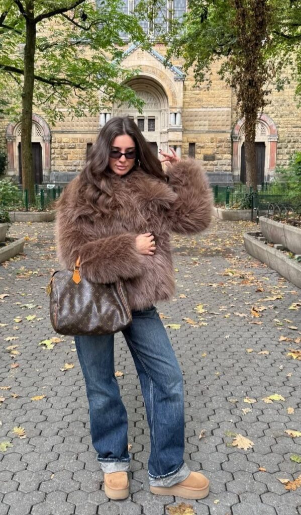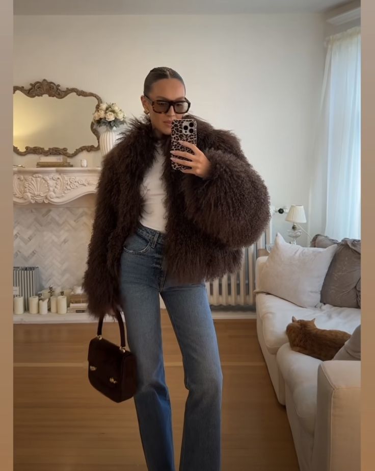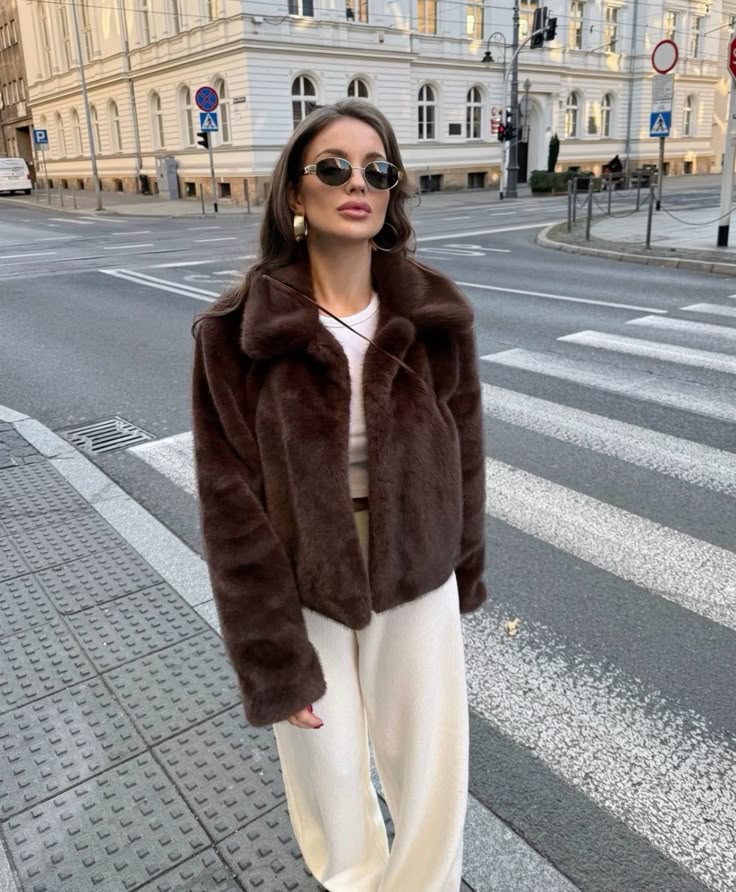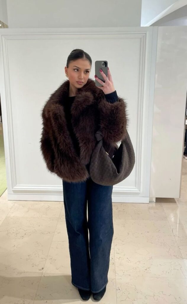 A brown fur jacket is one of those pieces that makes any outfit look more expensive. Throw it on and you instantly look pulled together, even if you’re just wearing jeans and a tee underneath.