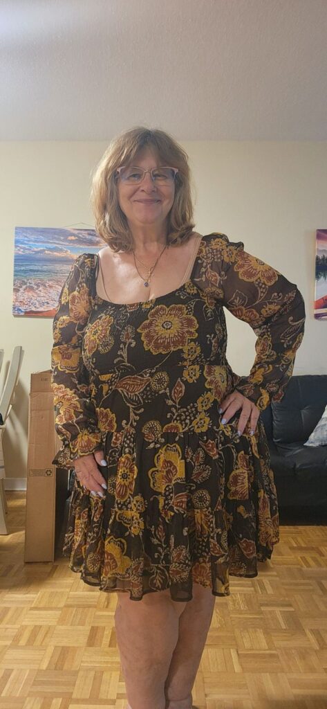 That vintage inspired floral in chocolate and mustard is such a gorgeous autumn palette. The square neckline and billowing sleeves give this mini dress real personality and movement. Honestly it does not need much else, just a simple pendant necklace and some ankle boots to finish it off. This is the dress that makes getting dressed feel genuinely fun rather than a daily negotiation.