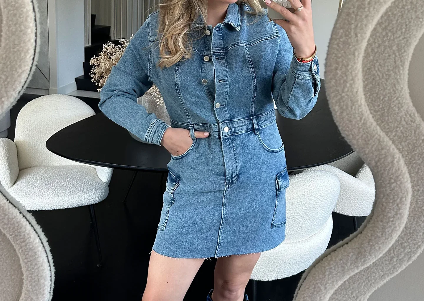 For the person who wants casual to feel genuinely cosy and pulled together, a pink turtleneck with straight leg mid wash jeans and white trainers is giving warm weekend energy. It is basically the outfit for a coffee run, a browse around the shops, a lunch with friends. Comfortable and stylish are not mutually exclusive and this look is proof of that every single time.