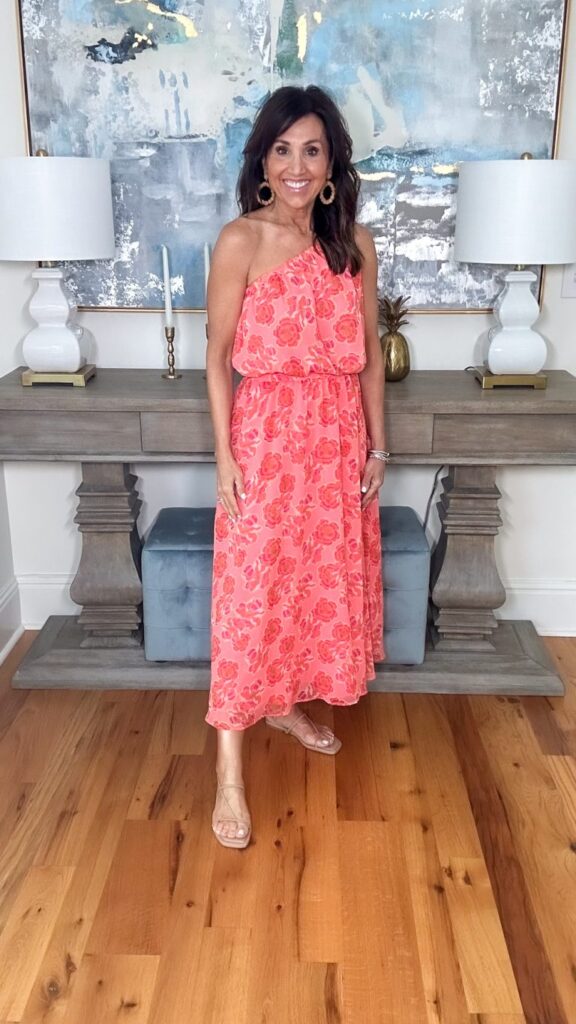 The blouson top creates a gorgeous silhouette and the floral print feels festive without being over the top.