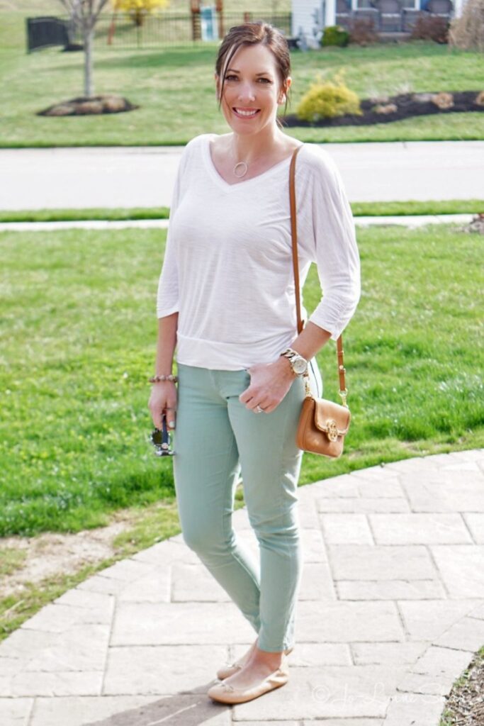 Paired with a relaxed white tee, a tan crossbody and nude ballet flats, it feels fresh and put together without any effort at all.
