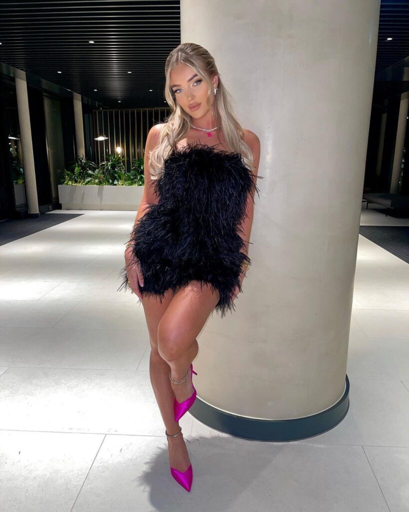 The black feather mini dress was already a look. Then the hot pink pointed toe heels walked in and turned the whole thing into an event.