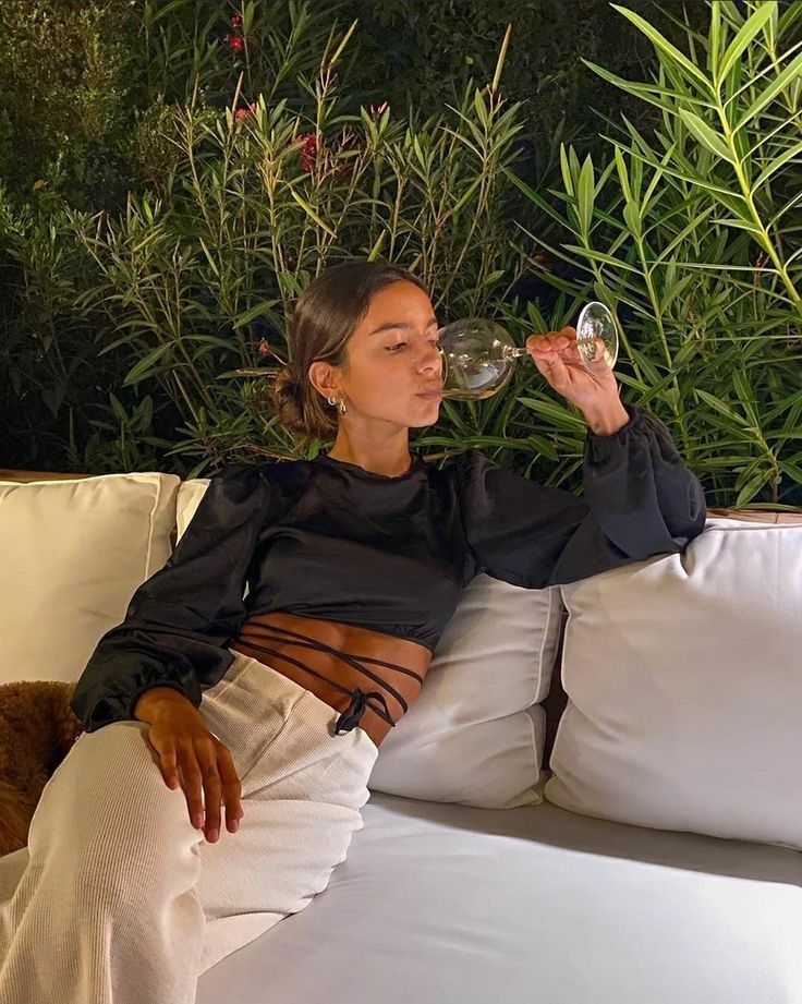 There is something about a black tie front crop with oversized sleeves and cream corduroy trousers that gives off an energy of complete unbothered chic.