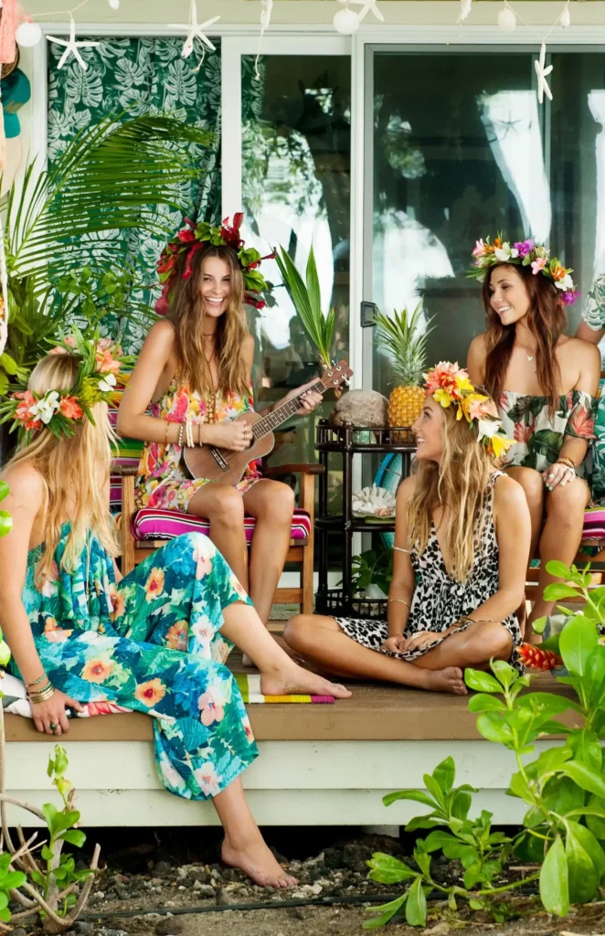 Nothing says Hawaiian celebration like vibrant floral prints and fresh flower accessories.