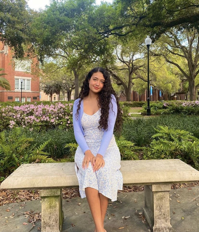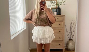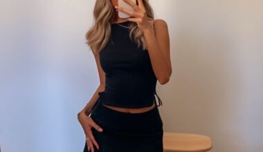 The white textured square neck crop top and mini skirt set is clean and classic but the yellow braided shoulder bag and hibiscus flower hair accessory is what makes this outfit actually interesting. She added a gold statement necklace and espadrille slides which pull the whole tropical vacation look together. So easy to recreate and so many ways to style it differently each day.