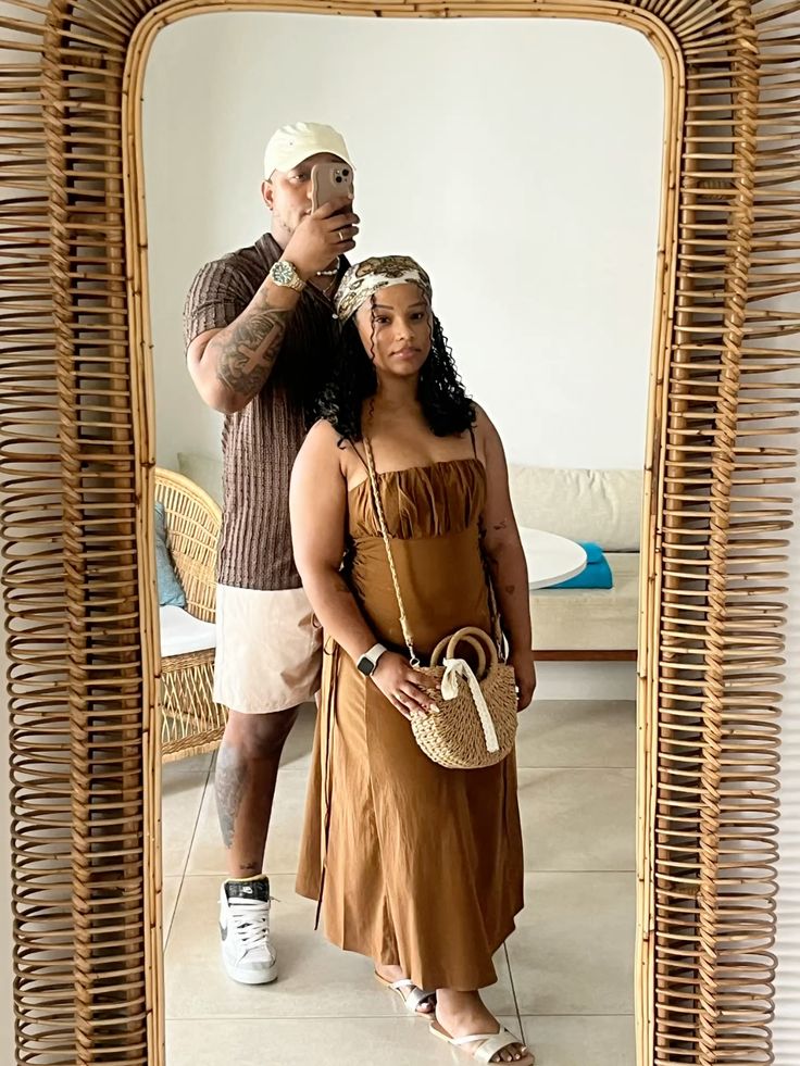 This one is so warm and cohesive it feels like the outfits were styled by a professional. The caramel linen sundress with a woven basket bag and printed silk headscarf is so romantic and relaxed. His brown textured polo with neutral shorts keeps everything in the same earthy tone family. You ought to try coordinating in one warm colour family instead of actually matching.
