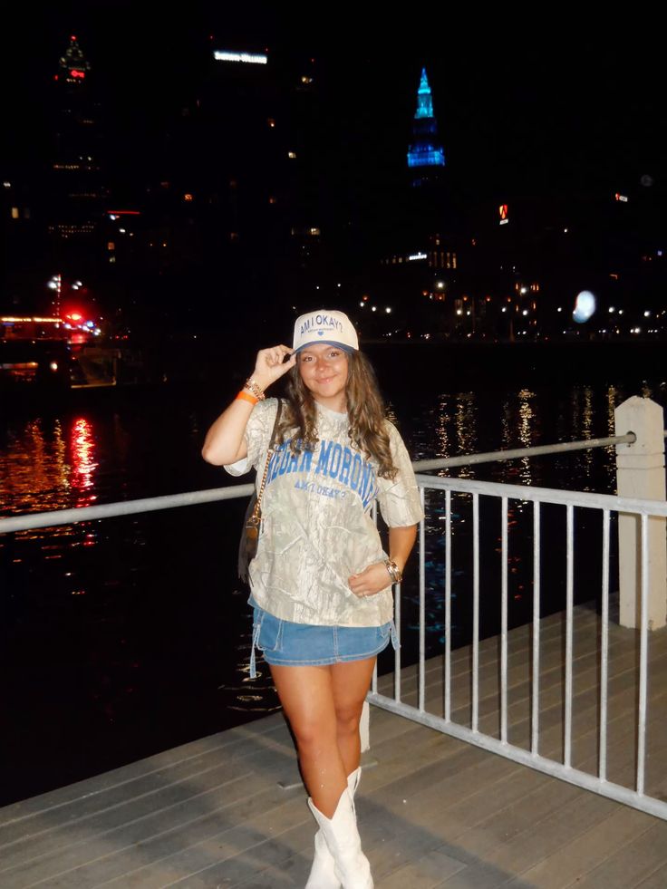 Wearing an oversized concert tee as a dress with white cowboy boots is honestly one of the smartest moves in this guide. It is comfortable, it shows your fan loyalty, and the boots make it feel styled rather than lazy. If you grab your merch at the venue you can literally change into it mid show. I mean, what is more efficient than that?