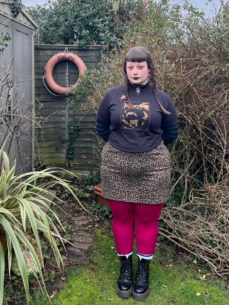 So the leopard mini skirt with a dark band tee and those magenta tights? Genuinely bold in the best way.