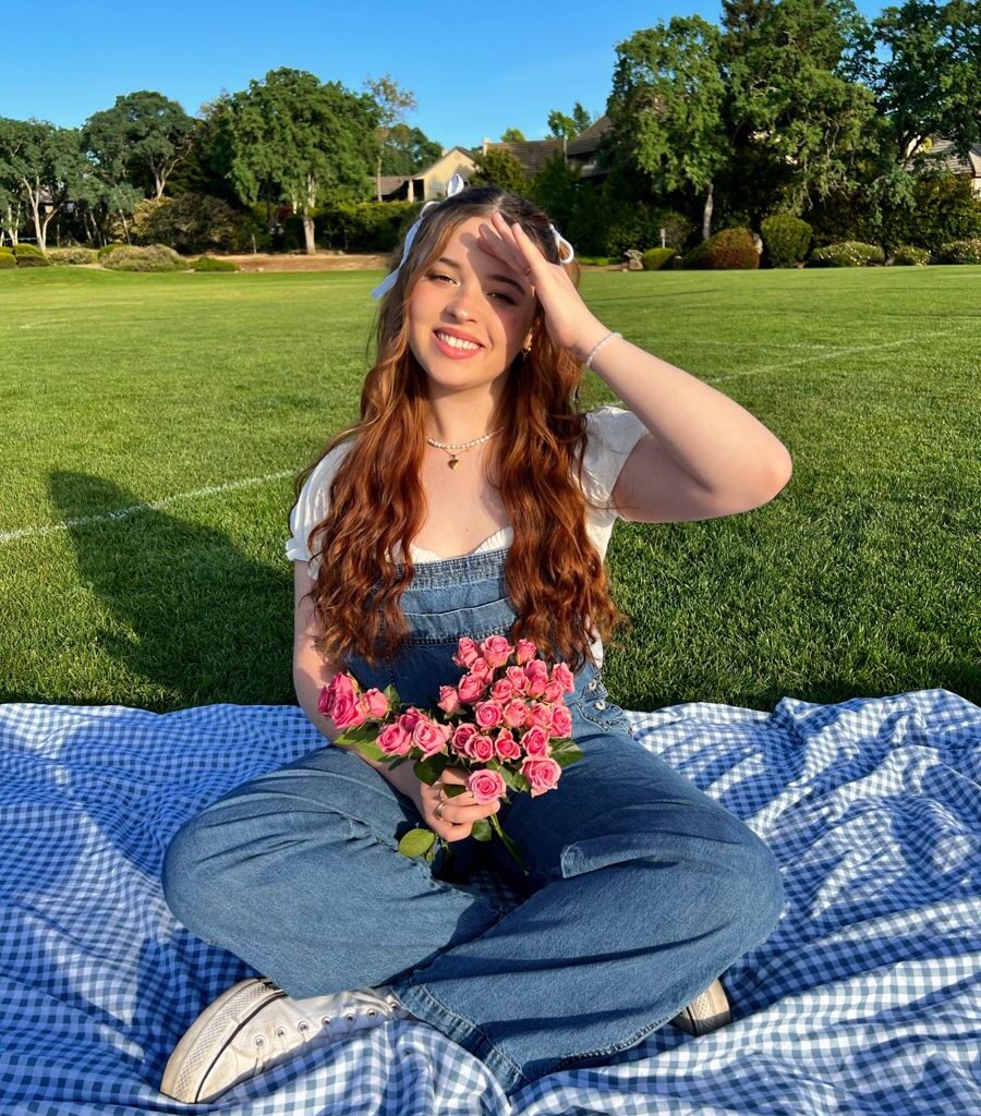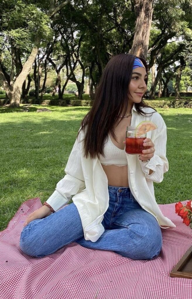 This one is for girls who think florals and fuss aren’t really their thing. An oversized white shirt layered over a ribbed crop and straight jeans works so well because it’s relaxed but still styled. The blue headband adds a little colour pop without going anywhere near “trying too hard.” So yes, you can absolutely look this good at a picnic without wearing a dress.