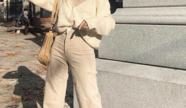 When I want a look that’s effortlessly feminine and cozy, I reach for soft grey cashmere paired with pink pants. The gentle warmth of the sweater feels like a comforting hug, while the pink adds a playful, fresh pop of color. It’s perfect for casual days when you want to feel put-together without trying too hard. To finish the look, I throw on neutral flats and delicate gold jewelry for a subtle touch of elegance. Give it a try for your next relaxed outing!