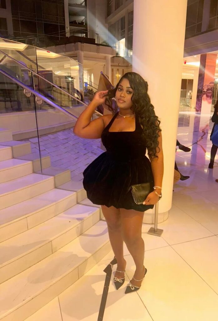 Black velvet bubble mini dresses are genuinely one of the best plus size birthday outfit choices because the volume works with your curves rather than against them. The bow embellished heels and gold jewellery finish the look with just the right amount of occasion energy. So if you want something that photographs beautifully under event lighting and requires zero layering decisions, this is literally the one.