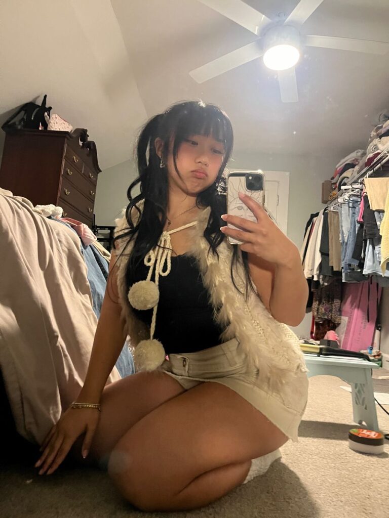Layering a cream feather and pom pom embellished vest over a black cami with tan cargo shorts and pigtails is such a playful and completely individual birthday look. It has this whole whimsical fairground energy and I honestly love it. The layered chain necklace adds just the right amount of edge. So if your birthday aesthetic is creative and slightly unexpected, you ought to absolutely build something around a statement vest like this.
