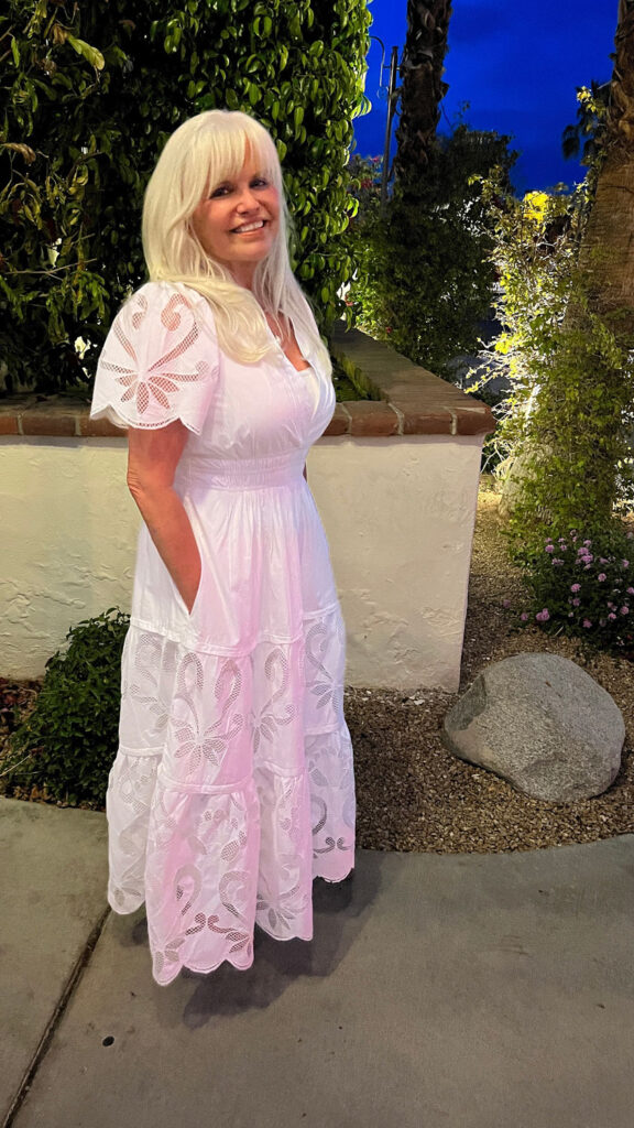A white tiered lace midi dress with intricate cutwork detail and fluttery sleeves is one of those pieces that just requires confidence to wear and delivers completely.