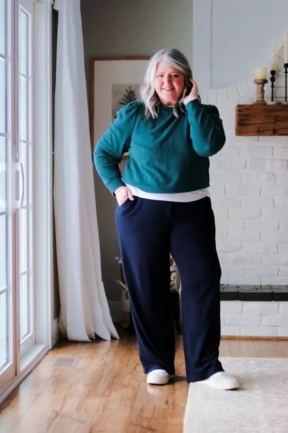 It’s comfortable, it’s pulled together, and the colour combination is warm and flattering.