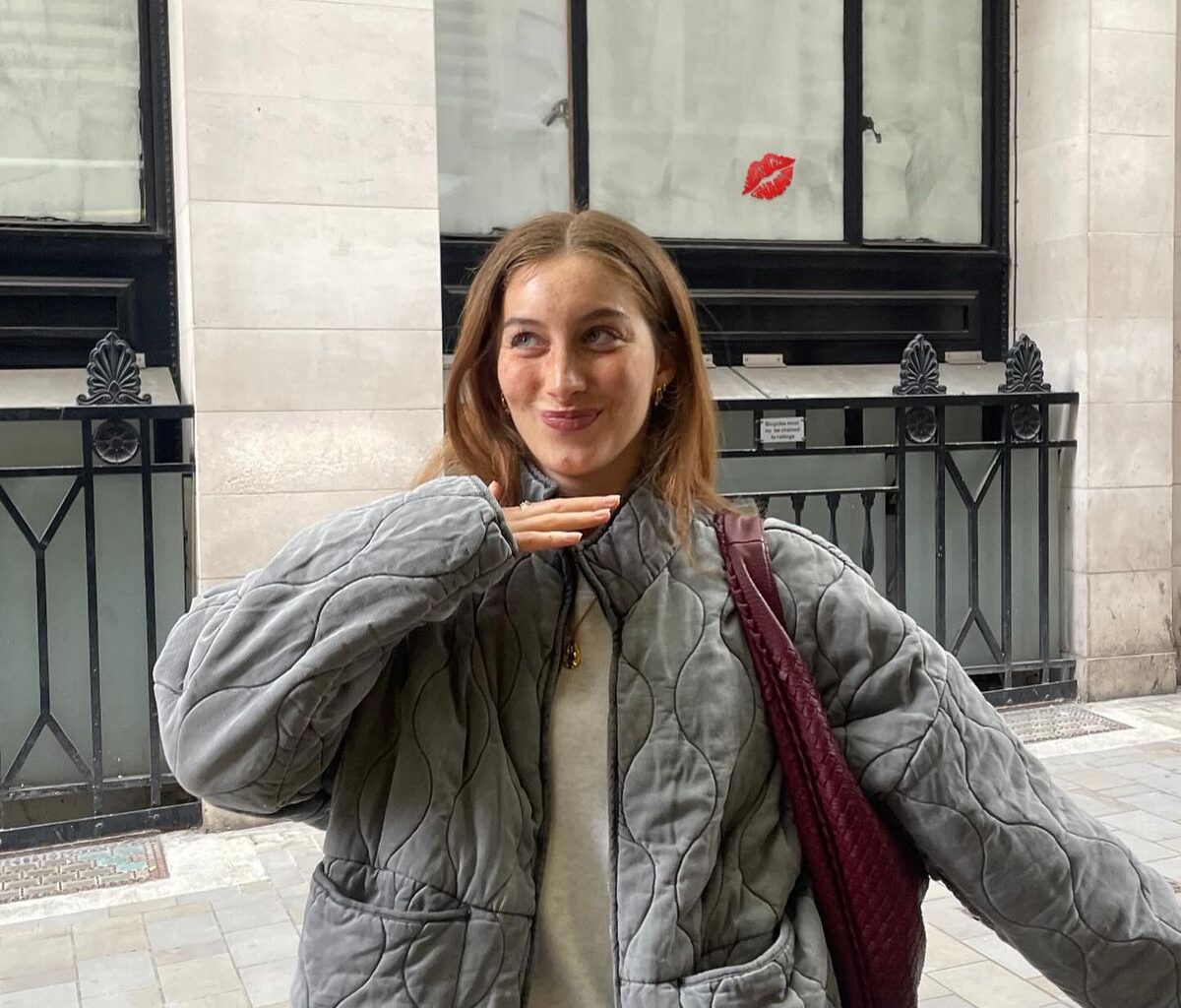 The chartreuse green quilted jacket worn slightly off one shoulder and paired with relaxed jeans and New Balance trainers gives such an artsy, unbothered energy. The matching green leather bag is such a good touch, it pulls the whole look into something cohesive without being matchy in a boring way. This is for the person who genuinely enjoys getting dressed in the morning.