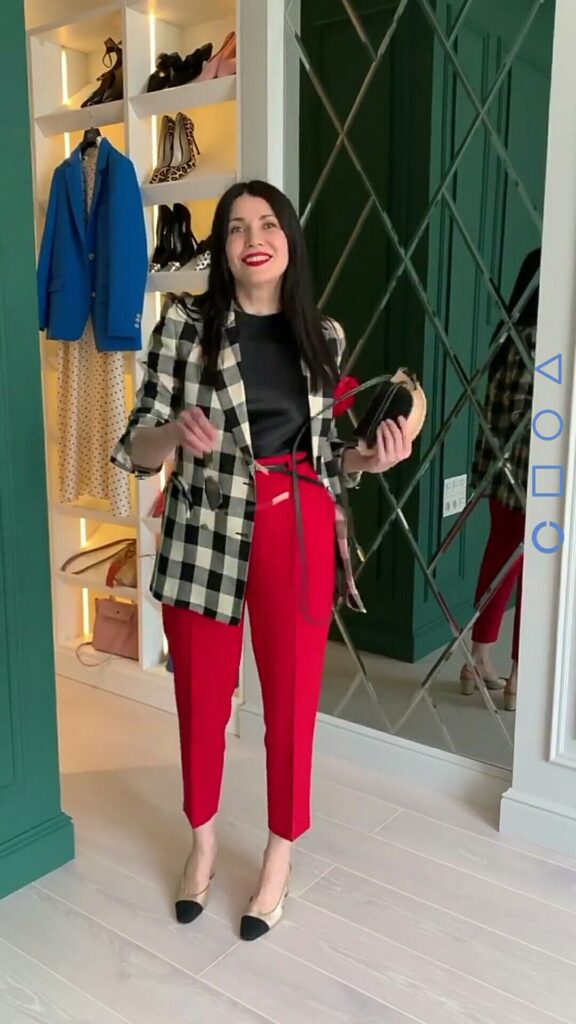 Gingham Blazer, Red Trousers, Colour Blocked Perfection
