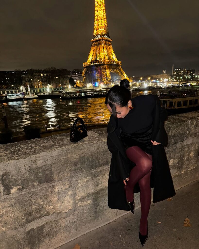 The colour contrast does all the work so the outfit stays simple everywhere else. I mean, it’s a bold move but Paris at night basically demands it.