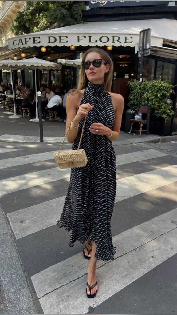 Polka dot midi dress with a halter neck and you’re done, honestly.