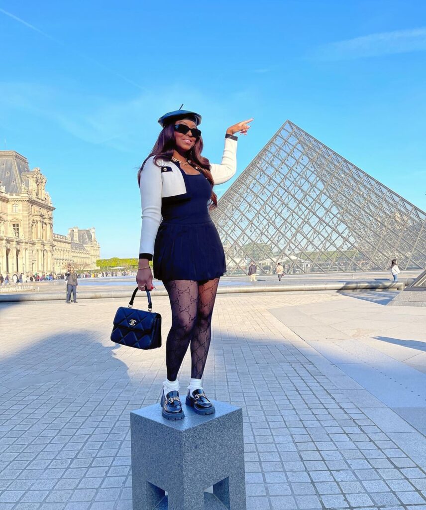 It’s dramatic, it’s intentional, and it makes total sense standing in front of the Louvre pyramid.