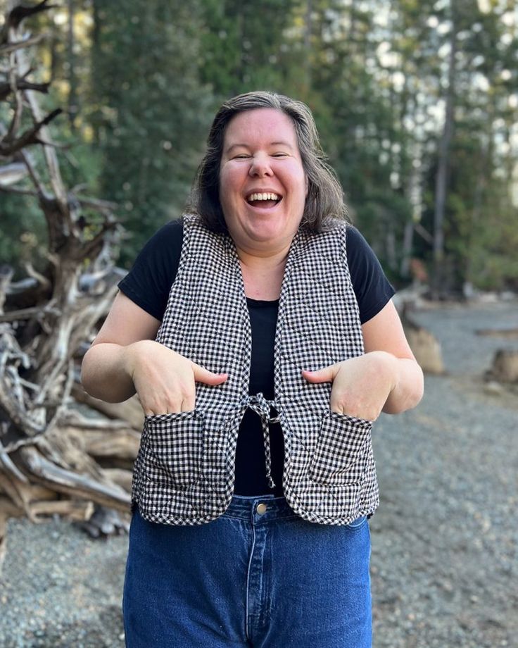 Okay so a quilted gingham vest over a black tee with straight leg jeans is genuinely so charming. It’s playful without being costumey and the pattern adds just enough visual interest that you don’t need to do much else.