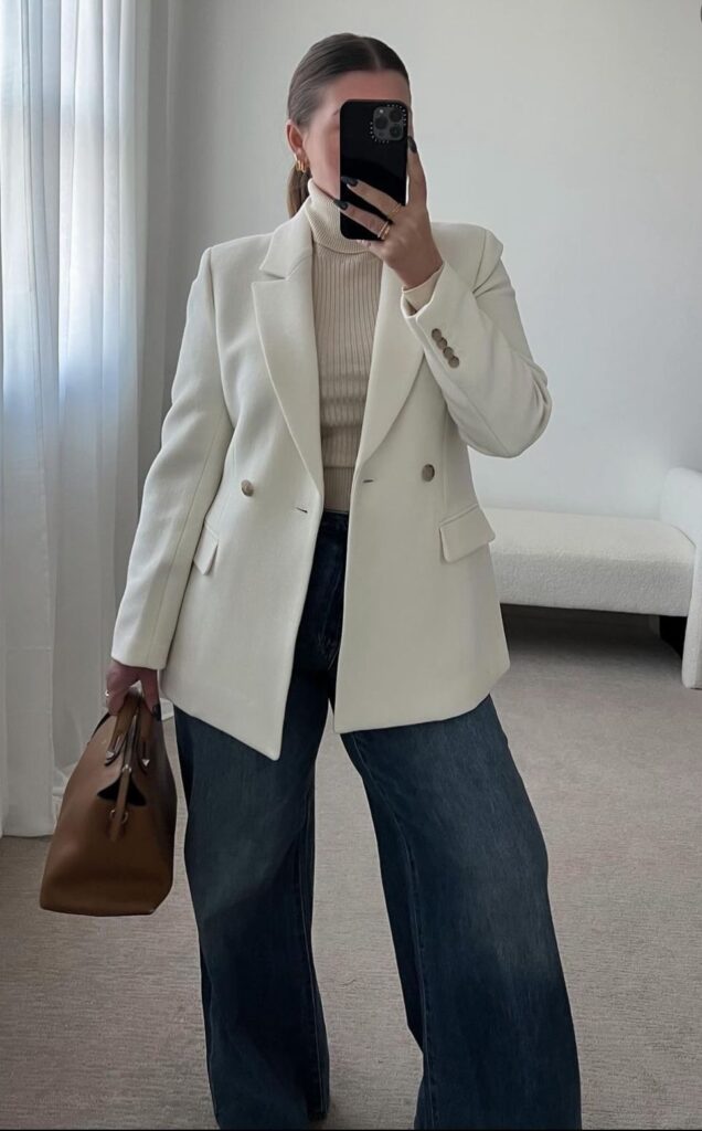 Black turtleneck under a white blazer with light wash jeans. So easy, so clean, so why haven’t you been doing this already?