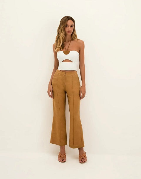 Soft Neutrals: Creamy Wide Leg Pants with Delicate Accessories